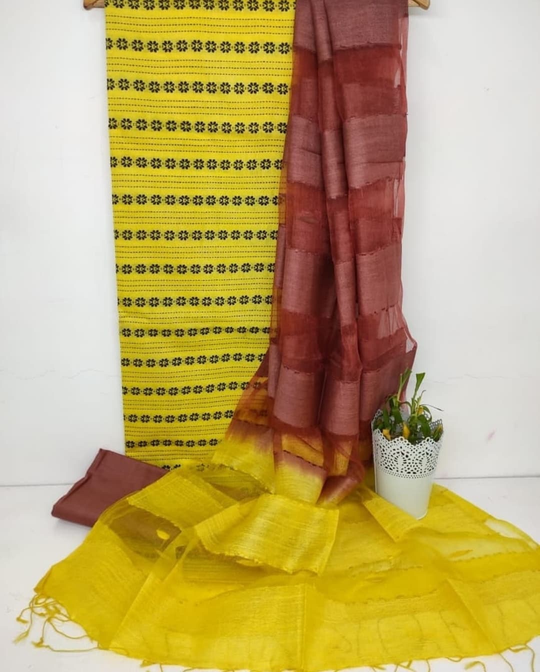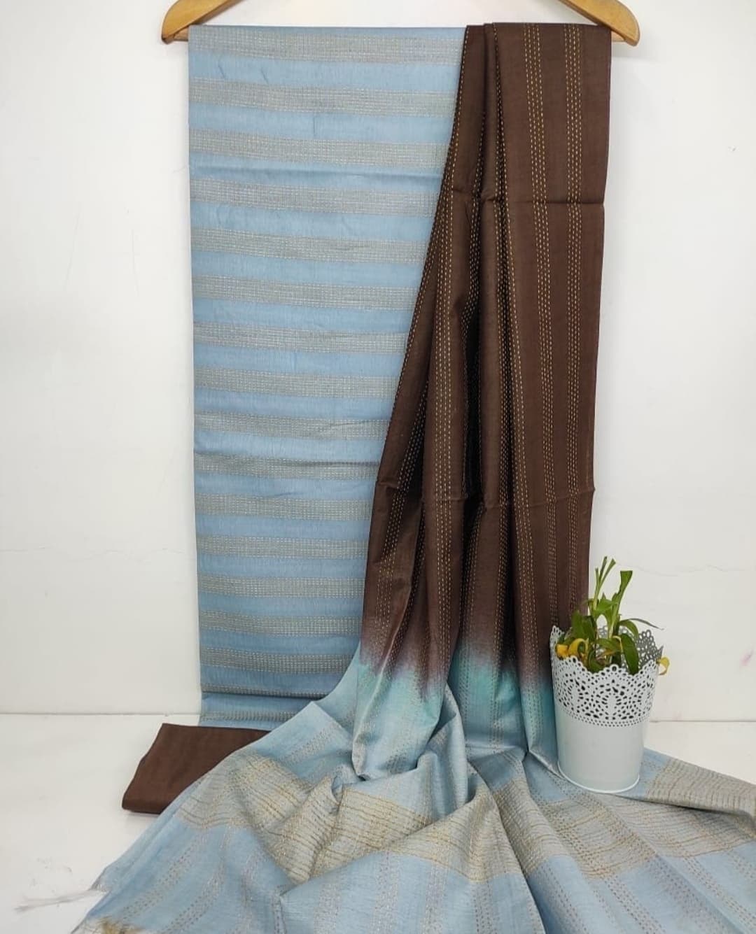 “At Weaveify, we offer authentic dress materials crafted from Bhagalpur’s finest fabrics. From breathable cotton to elegant silk and linen blends, our fabric sets are designed for tailoring stylish ethnic outfits – kurtis, salwar suits, or festive wear. Each fabric reflects our promise of quality, tradition, and elegance.”