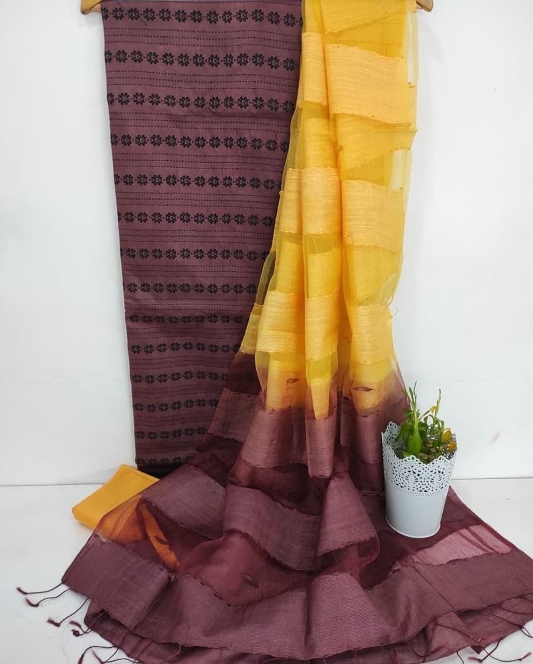 At Weaveify, our cotton dress materials are designed for comfort and elegance. Handwoven in Bhagalpur, these fabrics are soft, breathable, and perfect for summer wear. Whether you are tailoring kurtis, salwar suits, or everyday ethnic outfits, cotton fabric offers durability and ease of maintenance. Available in solid colors, printed designs, and woven textures, Weaveify’s cotton dress materials bring together tradition and modern style.